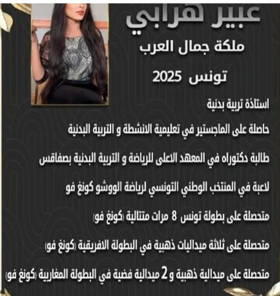 من هي ”عبير هرابي” ملكة جمال العرب تونس 2025؟