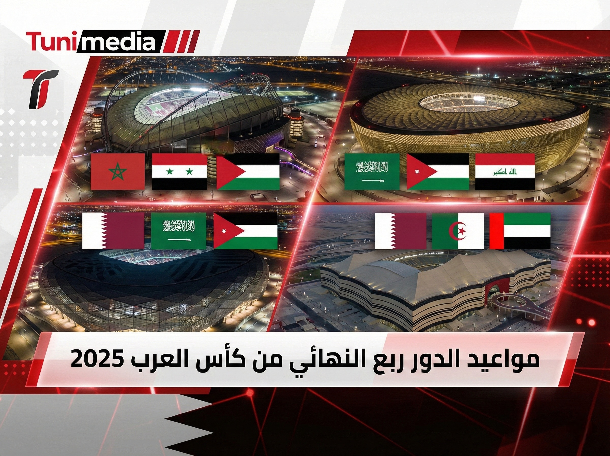 هذا هو البرنامج الرسمي لمباريات الدور ربع النهائي من كأس العرب 2025 في قطر، مع توقيت اللقاءات والملاعب.