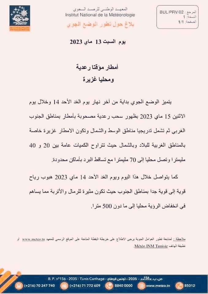 ⛈️وهذا تحذير من المعهد الوطني للرصد الجوي بخصوص التقلبات القوية التي تبدا غداً بعد الظهر … كميات أمطار تصل 70 مم