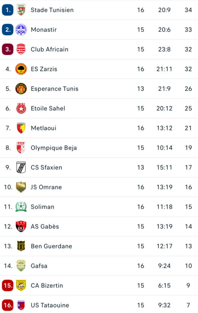 قوافل قفصة – شبيبة العمران 0-0الملعب التونسي – الترجي الجرجيسي 1-1