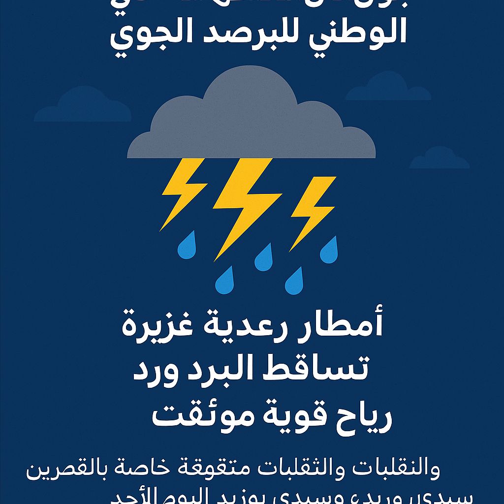 نشرة تحذيرية من المعهد الوطني للرصد الجوي: أمطار رعدية غزيرة وتساقط البرد في عدد من المناطق