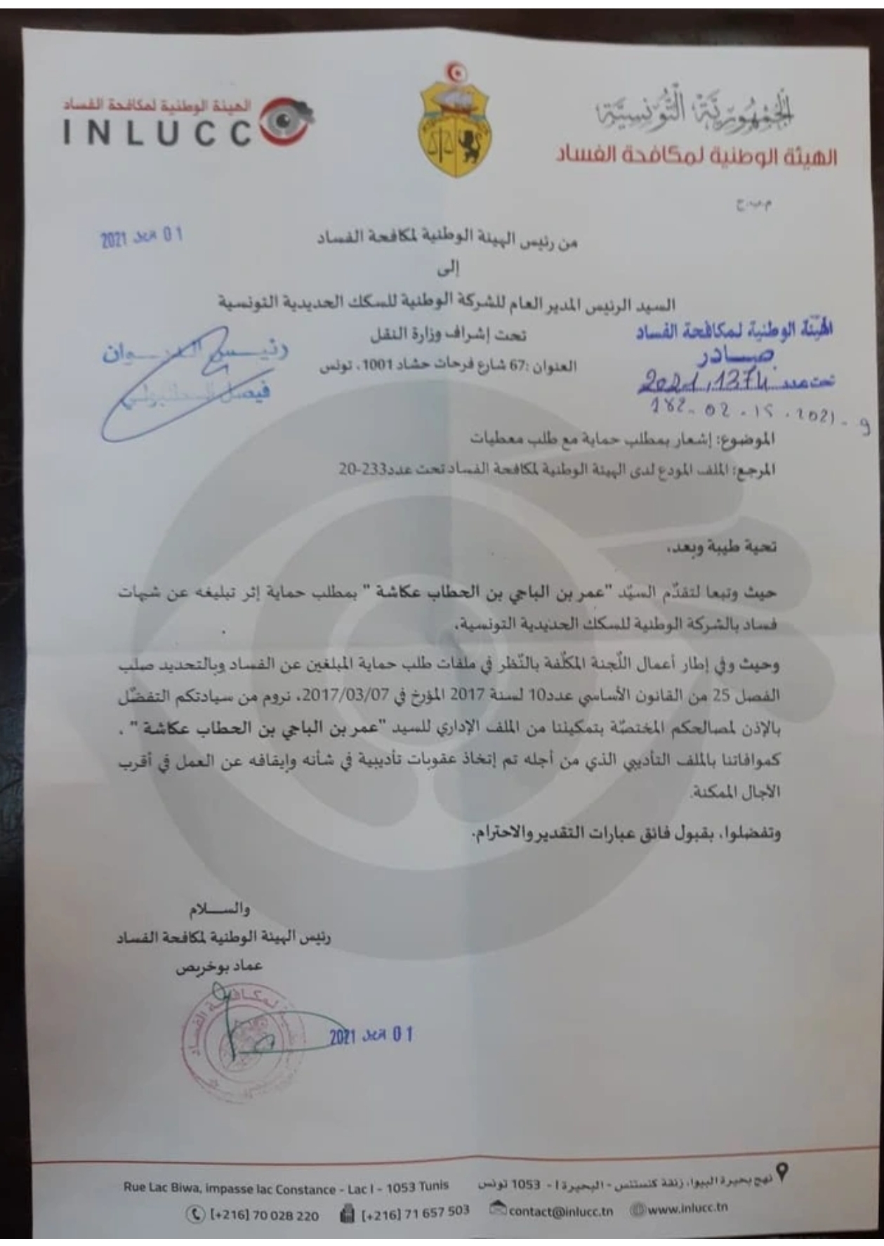 افاد موقع سكوب أنفو، اليوم، من مصادر من هيئة مكافحة الفساد، أنّ إقالة عماد بوخريص من رئاسة الهيئة جاءت على خلفيّة الشروع في إعداد ملّف لتمتيع شقيق مديرة الديوان الرئاسي بصفة مبلغ عن الفساد.