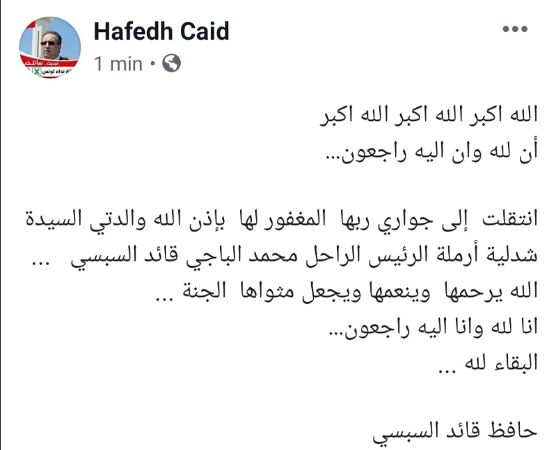 وكتب نجلها حافظ قايد السبسي على حسابه بموقع “فيس بوك”: