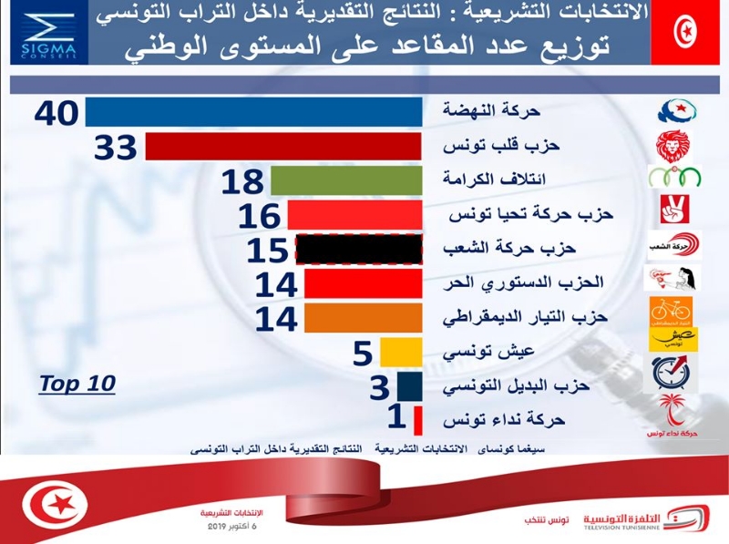 النهضة٪ 18.29..40 مقعد