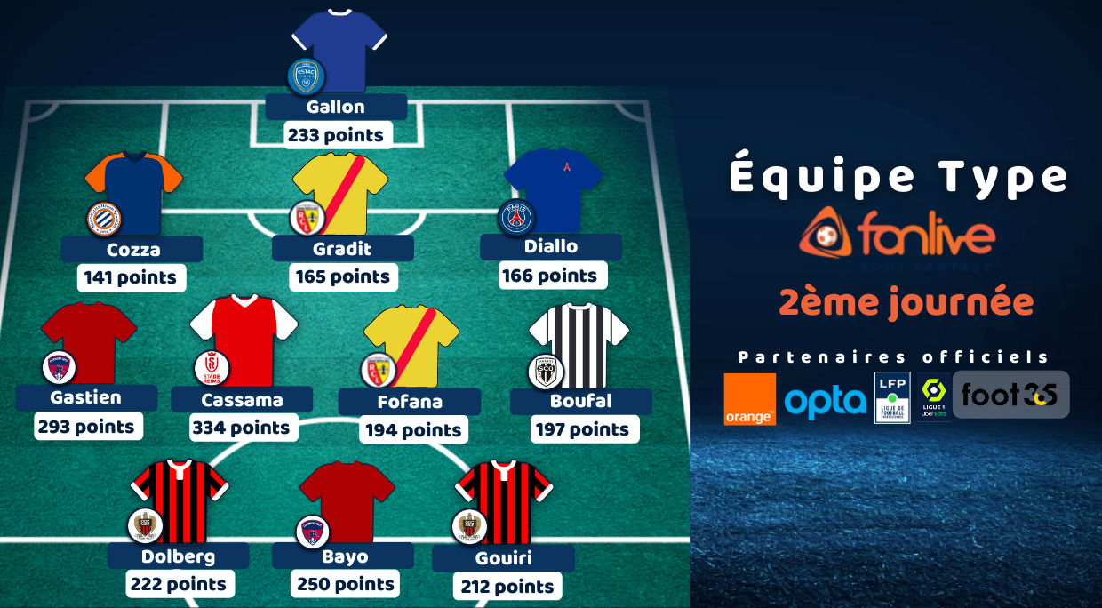 Découvrez chaque semaine l’équipe type de Ligue 1 de la journée précédente grâce à notre partenaire FanLive Fantasy, qui attribue des points à chaque joueur de Ligue 1 Uber Eats en fonction de ses véritables performances sur le terrain.