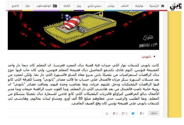 وأضاف الموقع الساخر أن “المجرد” وبعد أن أنهى سهرةً بأحد الفضاءات بتونس العاصمة الصيف الماضي “جاب جوج ديال الراقصات استعراضيات من بلجيكا باش يديرو معاه الشاو فالسهرة اللي دار تما ولكن لمجرد من بعد مسلات السهرة سكر مزيان فالفندق ومشا للغرفة اللي كانو فيها الراقصات البلجيكيات ودخل عليهم عريان، وبغا يغتاصب وحدة فيهم”.