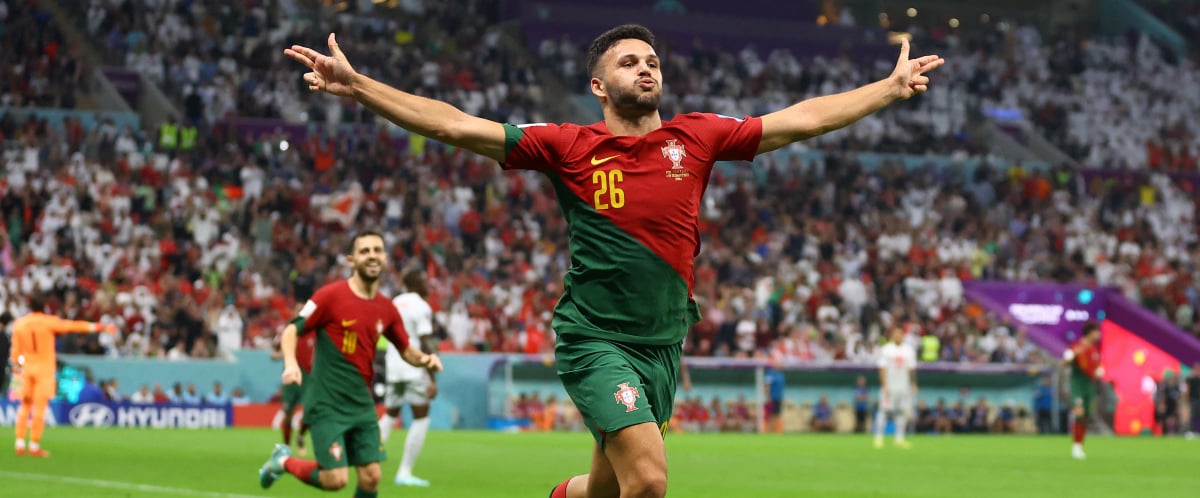 Goncalo Ramos a inscrit 14 buts et délivré six passes décisives en 21 matches toutes compétitions confondues pour Benfica cette année. Il a consolidé sa remarquable ascension à Lisbonne en inscrivant un triplé pour sa première titularisation en Coupe du monde, lorsqu’il a remplacé Cristiano Ronaldo dans le onze de départ lors de la victoire 6-1 du Portugal sur la Suisse.