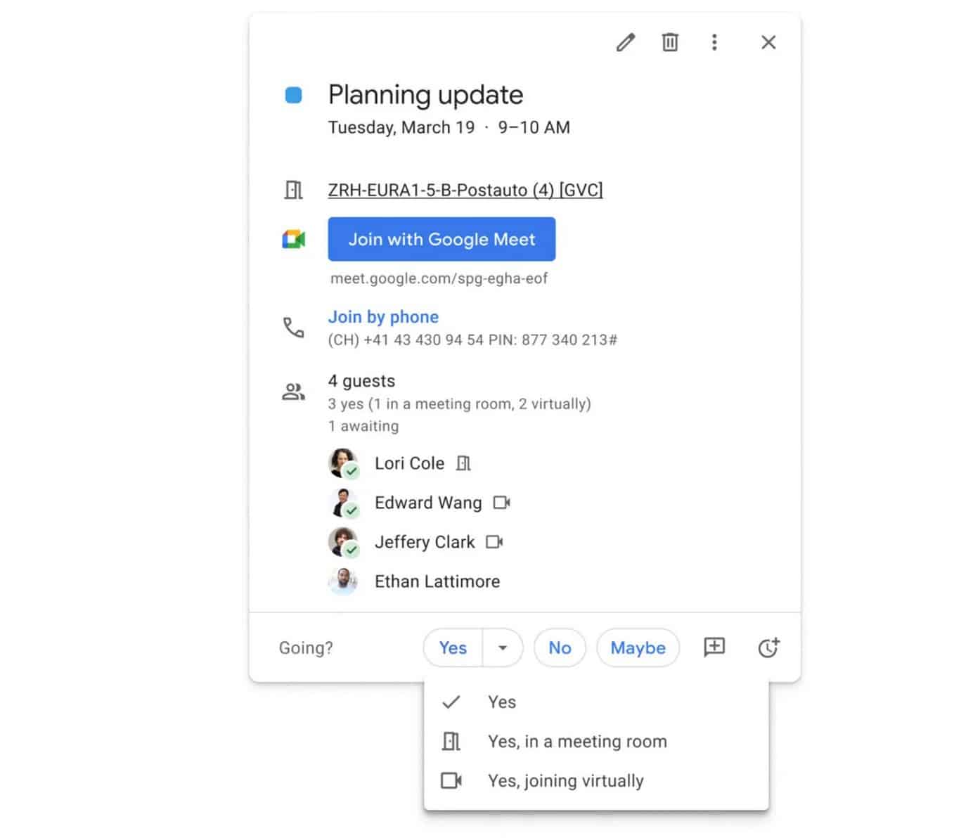 Voilà un changement très intéressant et pourtant tout à fat mineur. Étant donné la situation actuelle, cela pourrait se révéler très pratique. Pouvoir savoir quels participants seront là en personne et quels autres seront là à distance aidera à n’en point douter les organisateurs à mieux préparer les réunions, en optant pour une salle de réunion plus grande ou plus petite, en imprimant le bon nombre de dossiers, etc.