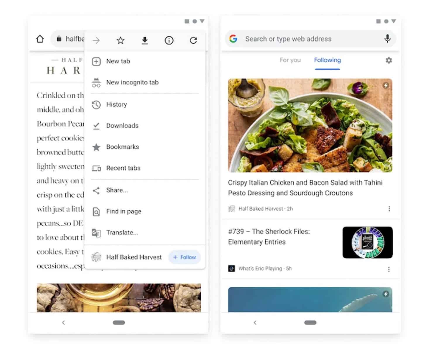 Selon le communiqué de Google, les utilisateurs sélectionnés pour cette phase de test devraient voir un bouton Follow sur Chrome pour Android. L’idée est simple. Ce bouton permet de suivre un site pour que, chaque fois que ce dernier publie un nouveau contenu, l’utilisateur puisse retrouver ce contenu dans la section “Following” affichée sur la page d’un nouvel onglet.