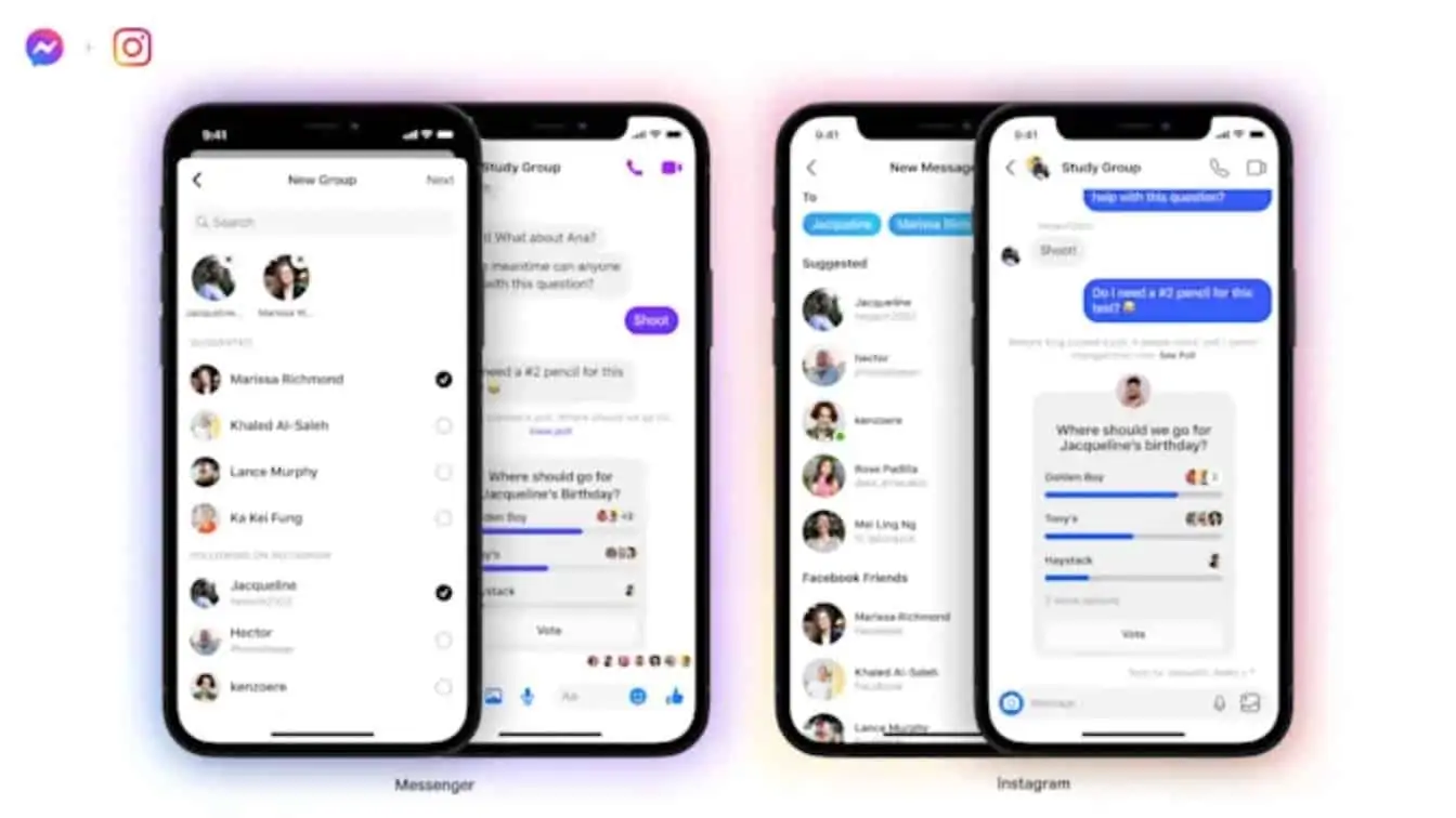 Facebook introduit un certain nombre de nouveautés sur Messenger et Instagram. Il est notamment possible de créer des groupes de conversation avec des contacts de Messenger et Instagram.