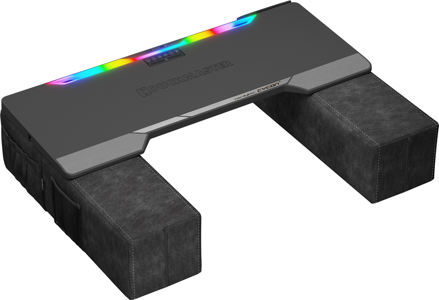 Utiliser son ordinateur portable sur le canapé, on l’a tous fait. La position n’est pas idéale, donc on se cambre beaucoup, et au final on lâche l’affaire rapidement pour retourner sur un bureau. Si on vous disait qu’un produit dédié à ce problème existe ? Il s’agit du Couchmaster Cycon³ de Nerdytec, l’idée est venue de 2 hommes en 2011 qui en avaient marre de joueur sur un bureau inconfortable avec un petit écran alors que leur canapé était juste à côté avec une grande télé.